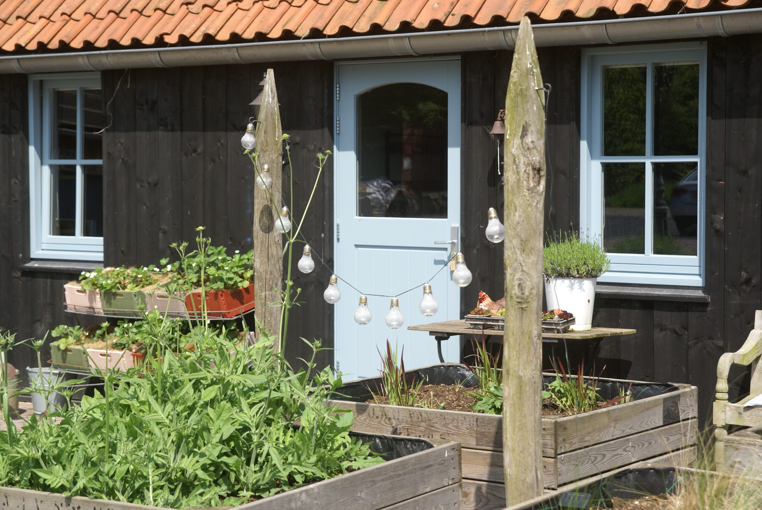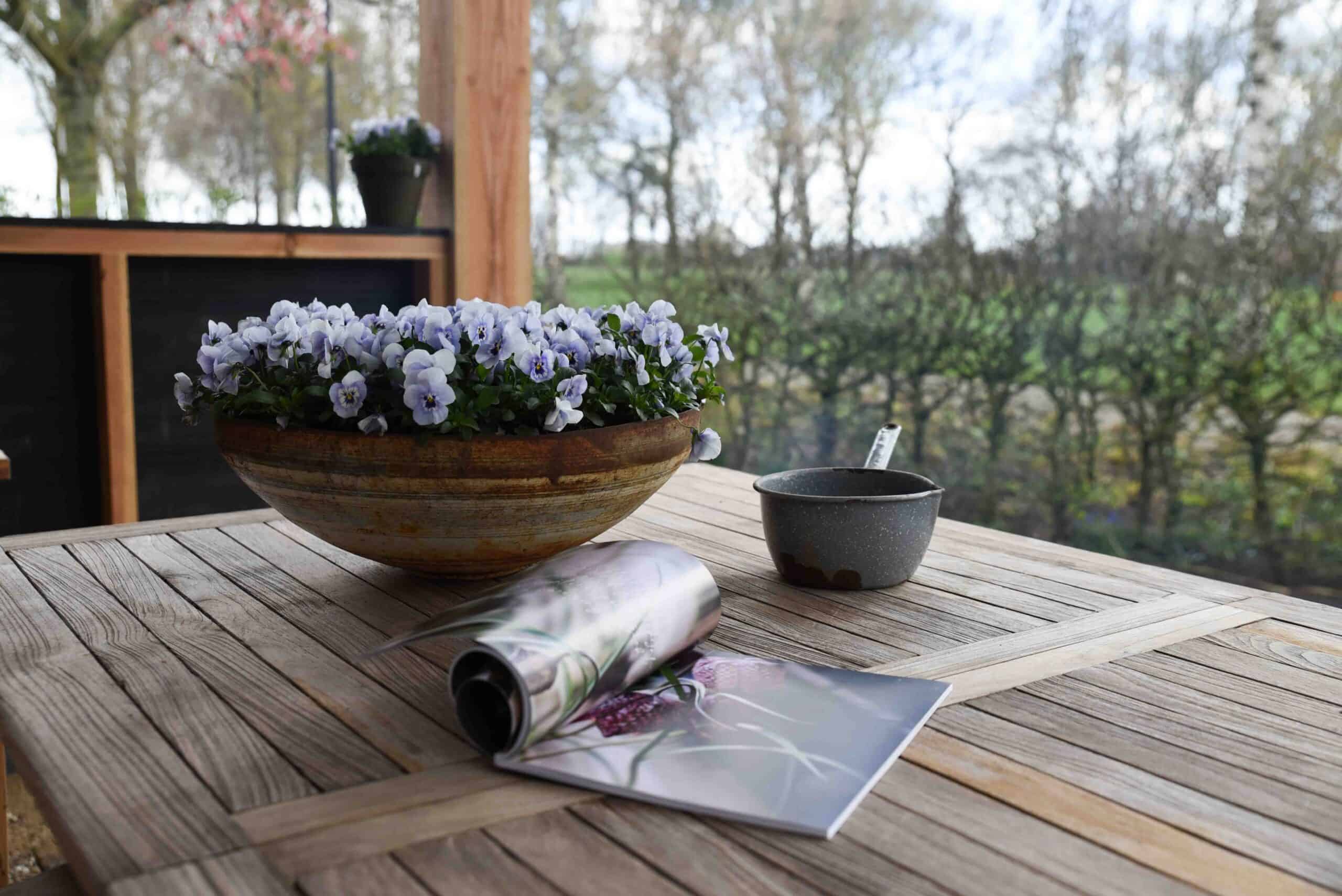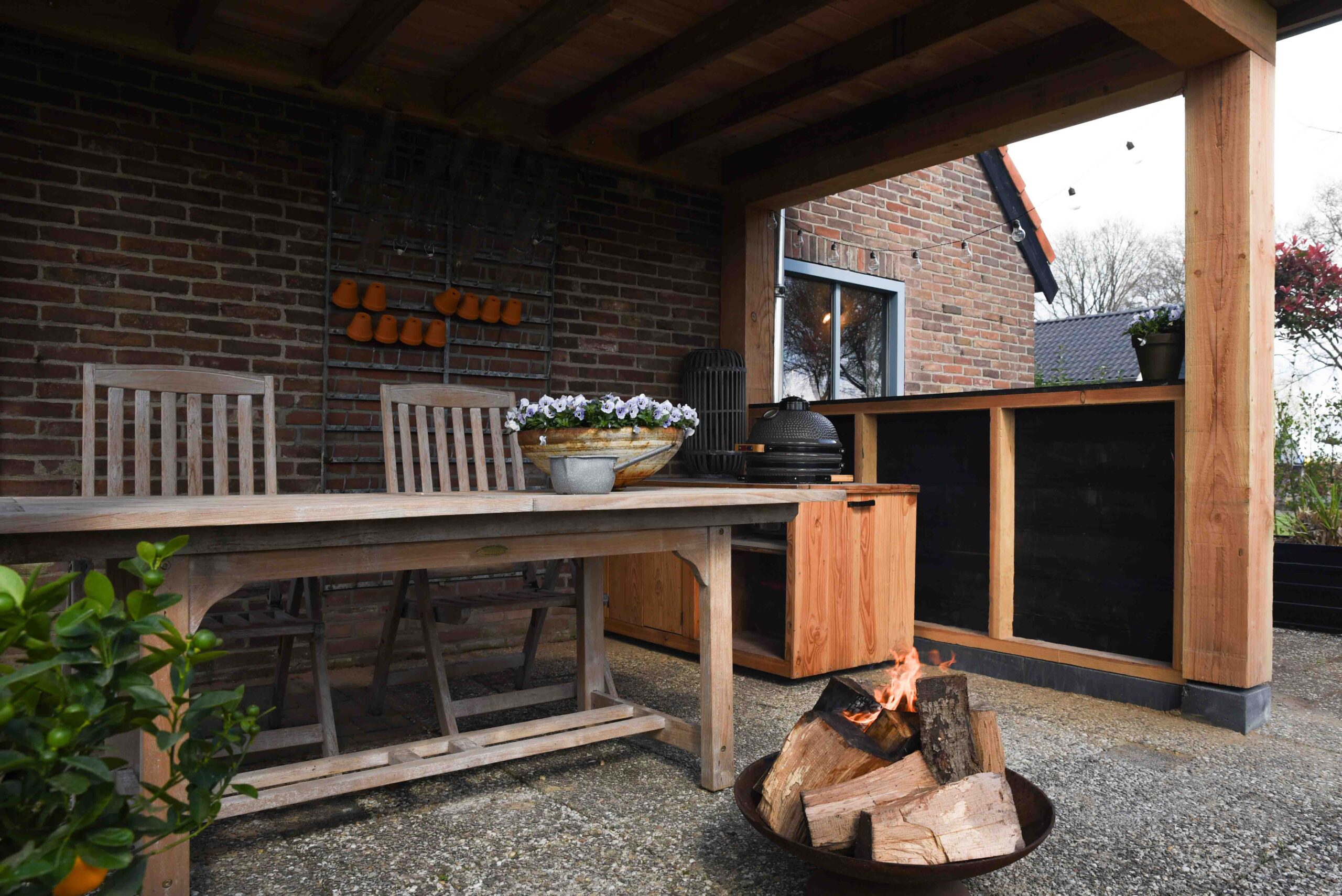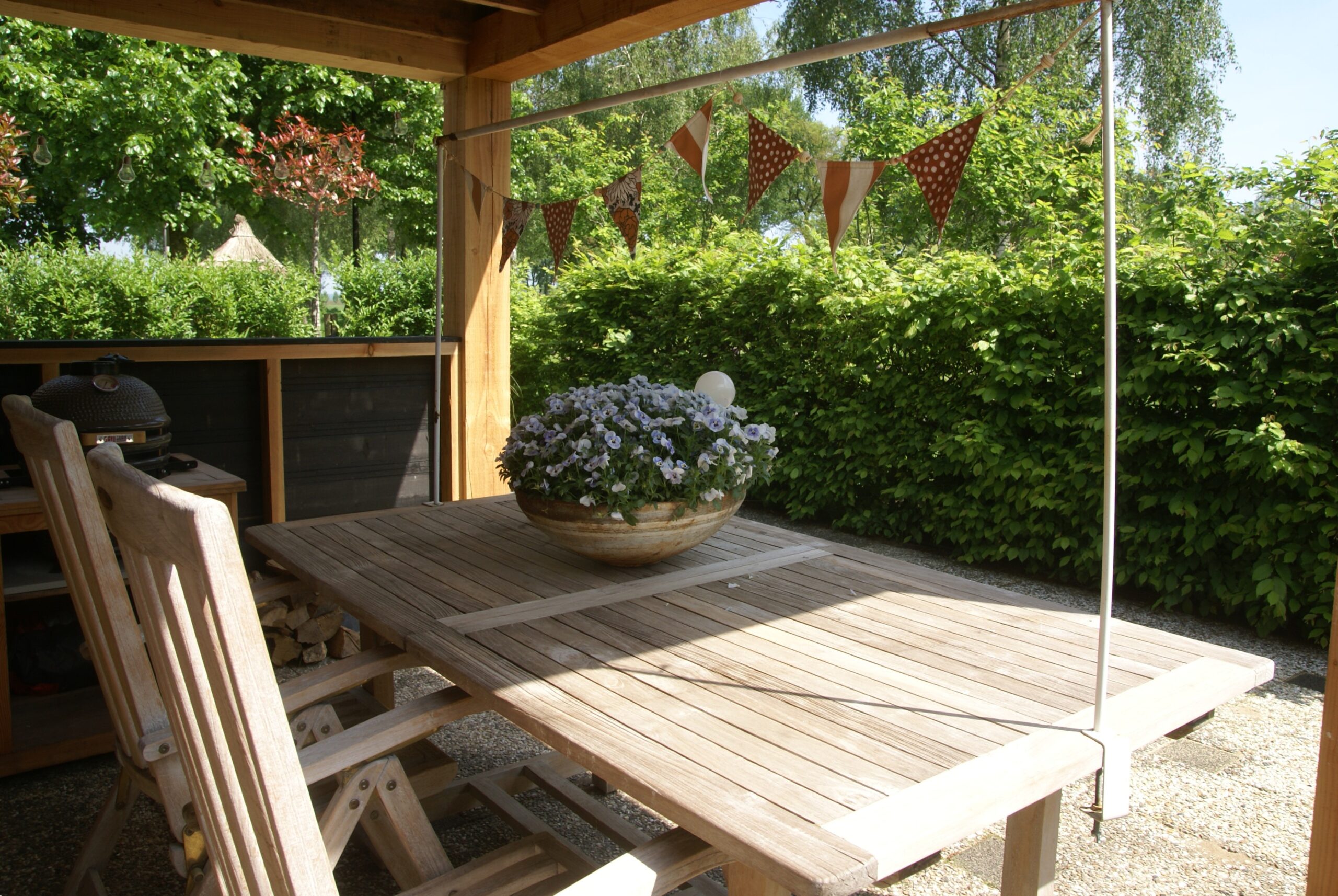 En dan buiten 😉 op je eigen terras kun je genieten van de heerlijke rust, het weidse uitzicht, de vogels, de natuur… Kortom: een heerlijk plekje! Het terras is voorzien van een veranda en een buitenkeuken met BBQ.