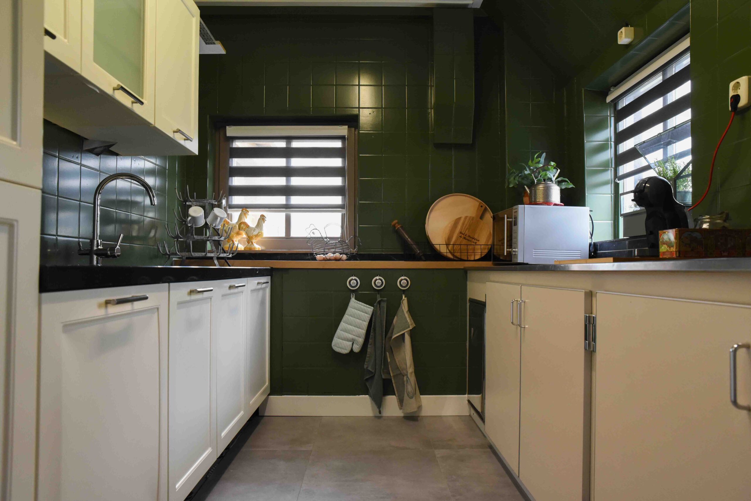De keuken is van alle gemakken voorzien: een koelkast, een vrieskast, een combi-magnetron, een eierkoker en uiteraard een koffiezetapparaat (Nescafé Dolce Gusto) en een waterkoker.